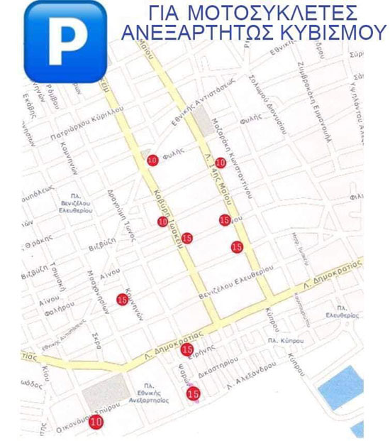 Στην δημιουργία 130 νέων θέσεων στάθμευσης των δικύκλων προχώρησε ο Δημοτική Αρχή σύμφωνα με την ανακοίνωση της το πρωί του Σαββάτου "Στο πλαίσιο των στοχευμένων δράσεων για την κυκλοφοριακή συμμόρφωση στο κέντρο της πόλης προχωρήσαμε στη δημιουργία νέων θέσεων στάθμευσης αποκλειστικά για δίκυκλα".