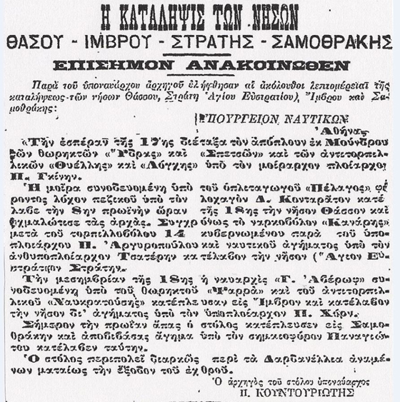 19 Οκτωβρίου 1912 - 113 χρόνια πέρασαν από την απελευθέρωση της Σαμοθράκης