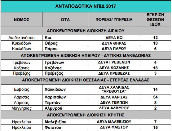 Δείτε την κατανομή των θέσεων στον παρακάτω πίνακα: