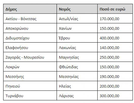 Στον ακόλουθο πίνακα αναφέρονται αναλυτικά τα ποσά που διαθέτει το ΥΠΕΣ:
