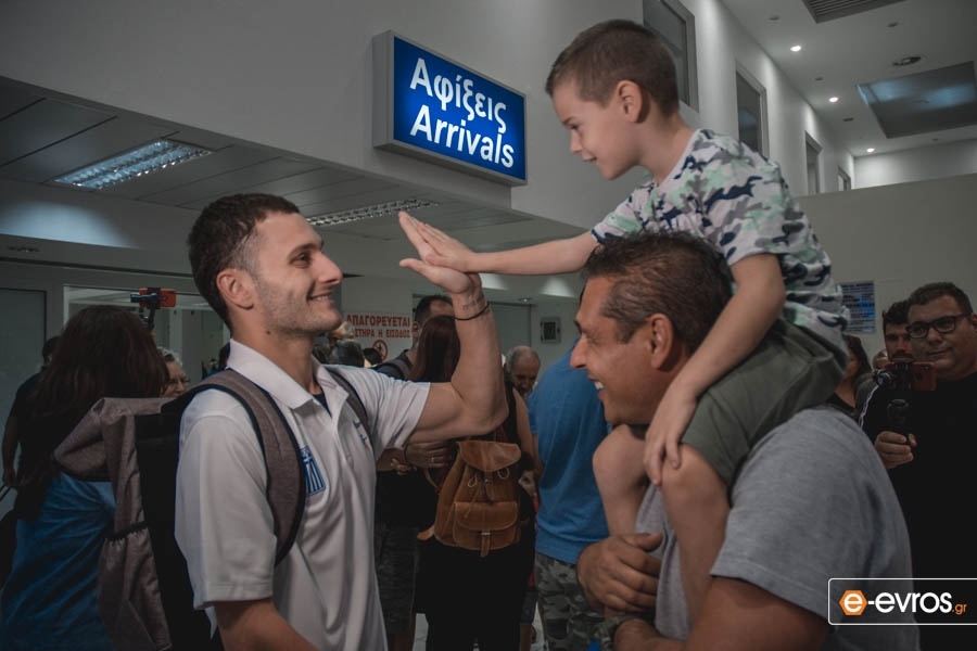 Οι δύο αθλητές έφτασαν την Δευτέρα 16, Σεπτεμβρίου στο αεροδρόμιο Δημόκριτος, όπου τους υποδέχθηκε μαζί με τον κόσμο και ο δήμαρχος της πόλης Γιάννης Ζαμπούκης.