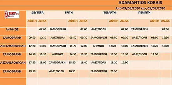 Αδαμάντιος Κοραής : Από 8 Ιουνίου σαλπάρει για Λήμνο μέσω Σαμοθράκης (πίνακας δρομολογίων)