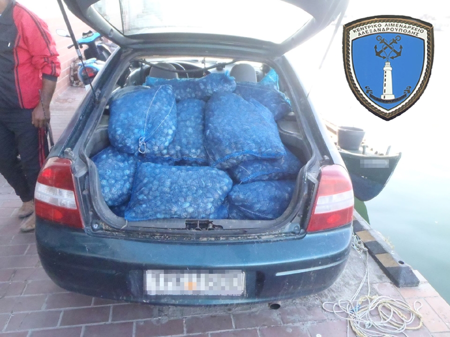 Οι δράστες οδηγήθηκαν από στελέχη της οικείας Λιμενικής Αρχής στην Ιχθυόσκαλα Αλεξανδρούπολης, όπου διαπιστώθηκε ότι μετέφεραν – μεταφόρτωναν - διακινούσαν από κοινού σαράντα πέντε σάκους με δίθυρα μαλάκια του είδους "Ruditapes decussatus" (αχιβάδα), συνολικού βάρους εννιακοσίων ογδόντα τεσσάρων (984) κιλών, εκ των οποίων είκοσι δύο (22) σάκοι, βάρους τετρακοσίων ενενήντα (490) κιλών, υπολειπομένων διαστάσεων – από 3,5 έως 4,0 εκ., κάτω του επιτρεπόμενου ελάχιστου μεγέθους των 4,5εκ. - ενώ το σύνολο των οστράκων κρίθηκαν από το Τμήμα Κτηνιατρικής της Περιφερειακής Ενότητας Έβρου ακατάλληλα για ανθρώπινη κατανάλωση.
