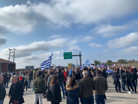 Πλήθος κόσμου συγκεντρώθηκε σήμερα στο τελωνείο των Κήπων συμμετέχοντας στην συγκέντρωση διαμαρτυρίας για το μεταναστευτικό.
