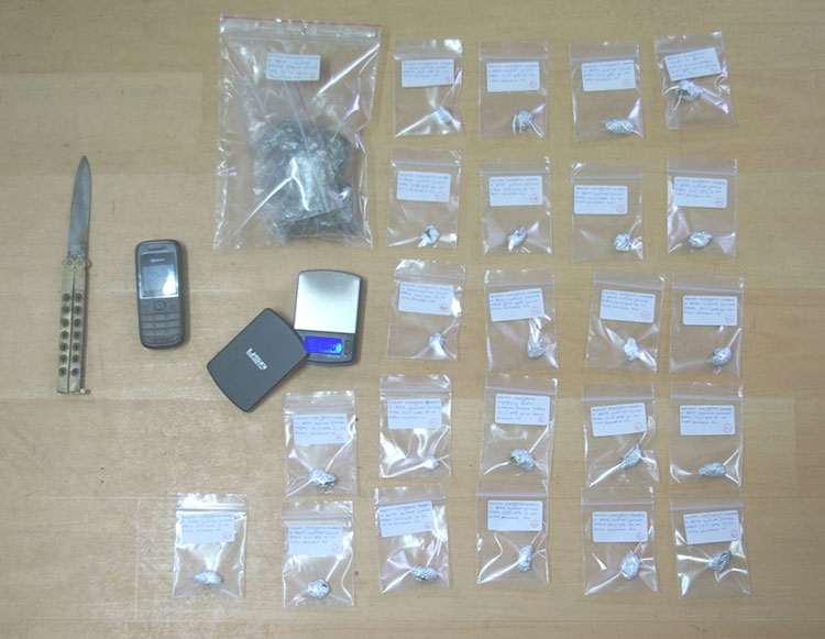 Κατασχέθηκαν οι παραπάνω ποσότητες ναρκωτικών, το δενδρύλλιο κάνναβης, το μαχαίρι και ένα Ι.Χ.Ε. αυτοκίνητο.