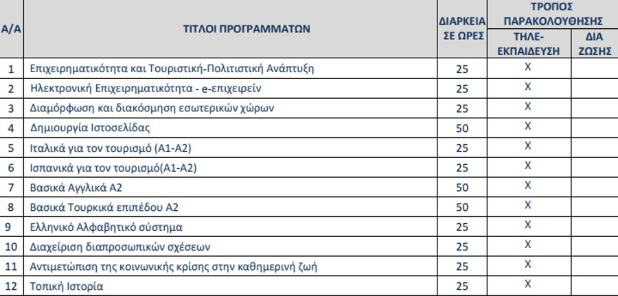 Σε περιπτώσεις αναστολής της δια ζώσης εκπαίδευσης λόγω περιοριστικών μέτρων για την αντιμετώπιση της πανδημίας covid-19, τα τμήματα μάθησης θα υλοποιούνται μόνο μέσω τηλε-εκπαίδευσης (εξ αποστάσεως παρακολούθηση).