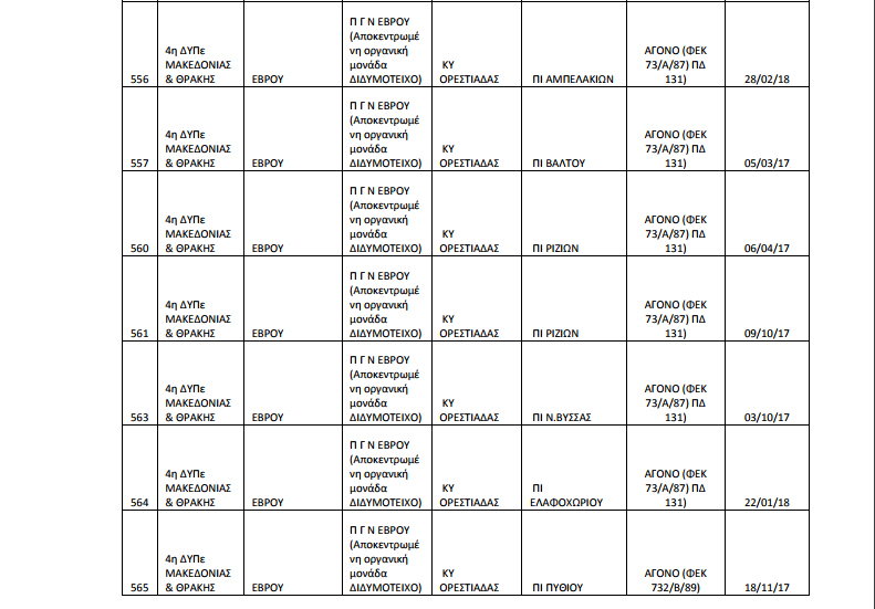 Το Υπουργείο Υγείας ανακοίνωσε την προκήρυξη κενών και κενούμενων θέσεων ιατρών υπηρεσίας υπαίθρου (ιατροί με τίτλο ειδικότητας Γενικής Ιατρικής, ιατροί υπόχρεοι υπηρεσίας υπαίθρου και ιατροί επί θητεία) σε Γενικά Νοσοκομεία - Κέντρα Υγείας, Κέντρα Υγείας, Πολυδύναμα Περιφερειακά Ιατρεία, Περιφερειακά Ιατρεία και Ειδικά Περιφερειακά Ιατρεία για την κάλυψή τους. Συγκεκριμένα για τον Έβρο οι θέσεις: