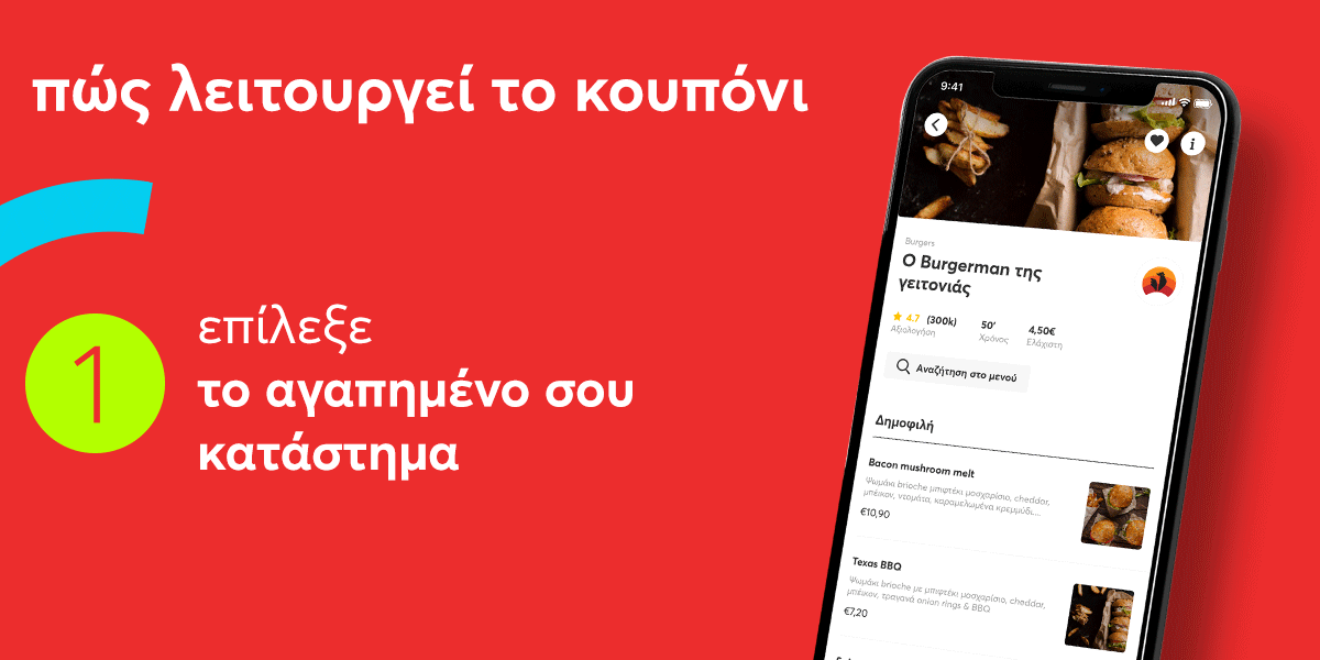 *Η έκπτωση ισχύει μόνο για παραγγελίες μέσα από το efood app. Εξαιρούνται από την προσφορά τα καταστήματα της κατηγορίας “Tοπικά καταστήματα”.