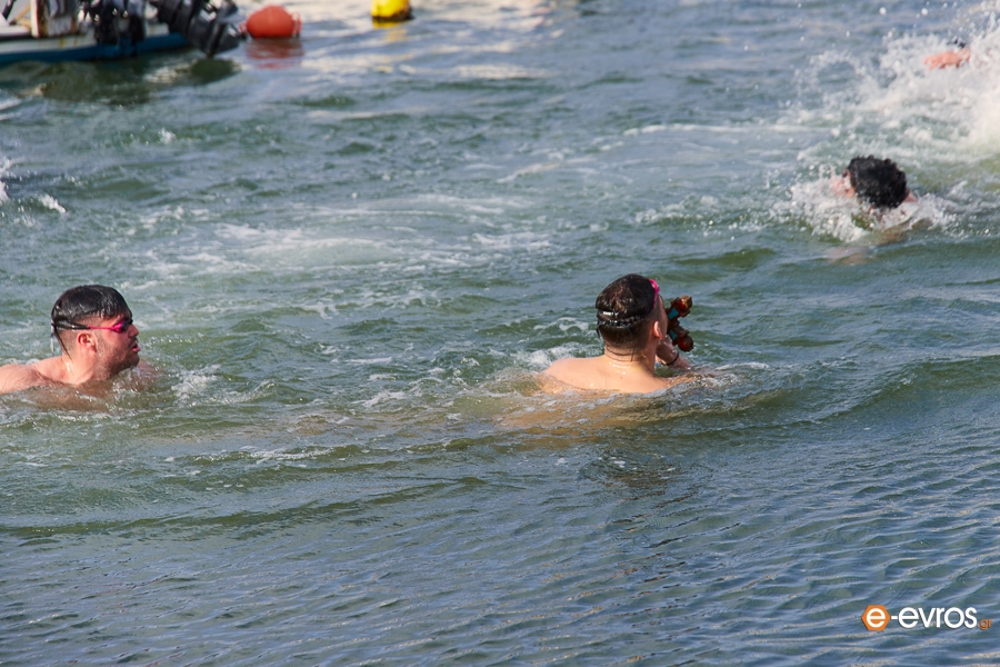 Αρκετοί ήταν οι τολμηροί που αψηφώντας το κρύο τόλμησαν και βούτηξαν στα νερά για να πιάσουν το Σταυρό.