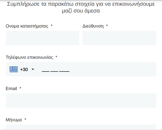 Συμπληρώστε τα στοιχεία σας στην ειδική φόρμα επικοινωνίας κάτω-δεξιά στην πλατφόρμα, στην κατηγορία: "Έχεις κατάστημα;"ή καλέστε τους στο: 2551305757 για ένα ραντεβού στο χώρο σας!