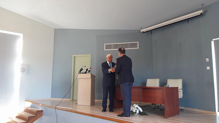 Ο Πρόεδρος της Δημοκρατίας βρέθηκε στο παλιό Δημαρχείο της Σαμοθράκη στη Χώρα, όπου ενημερώνεται για το μέγεθος της καταστροφής μετά από τη θεομηνία που χτύπησε την περιοχή στις 25 Σεπτεμβρίου.