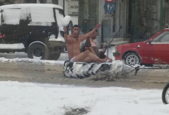 Οι "τρελαμένοι" της Ορεστιάδας μετά το αυτοσχέδιο έλκηθρο - λάστιχο και την βόλτα στο κέντρο της Ορεστιάδας, ξαναχτυπούν.