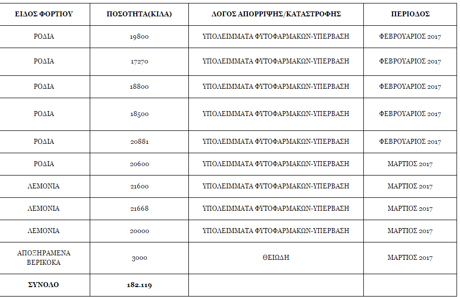 Επισημαίνεται ότι τα παραπάνω φορτία είχαν προορισμό τόσο την αγορά της Κοινότητας όσο και την εγχώρια αγορά.
