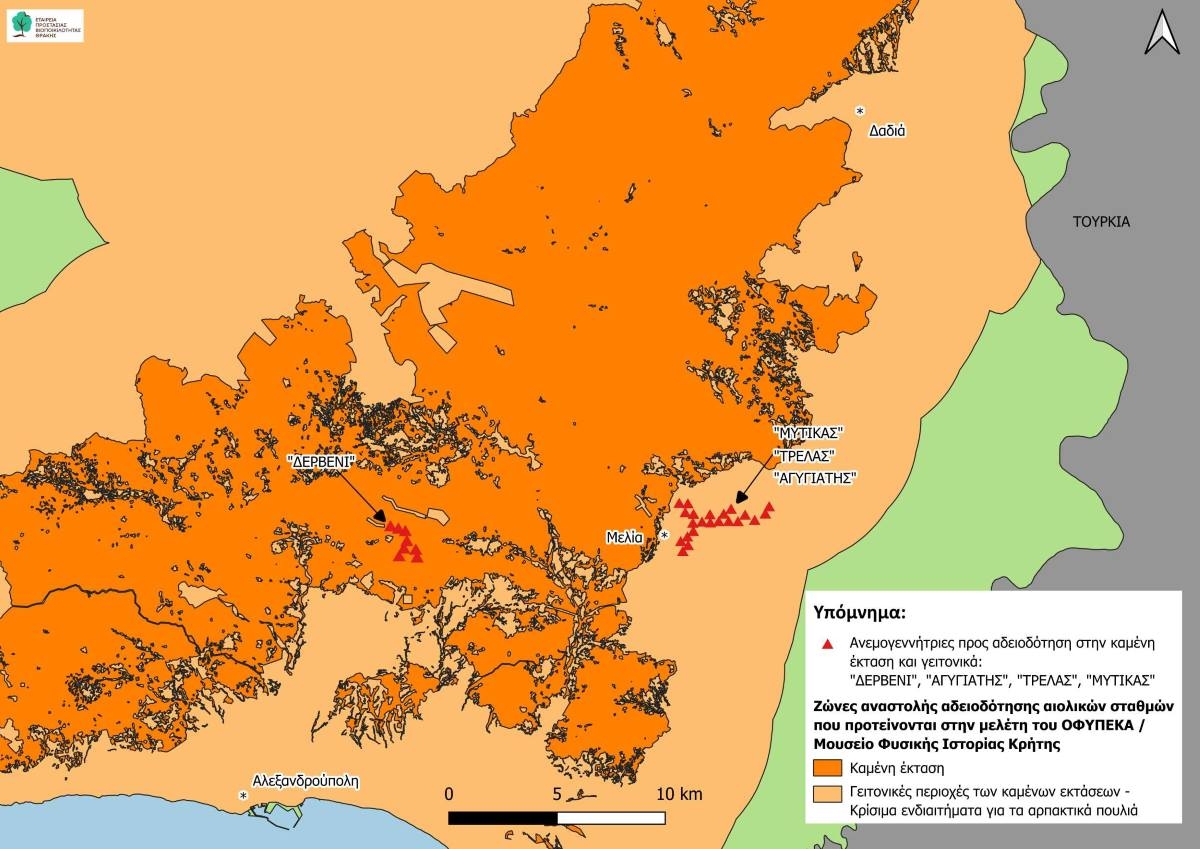 Σύμφωνα με κοινή ανακοίνωση από την Εταιρεία Προστασίας Βιοποικιλότητας Θράκης, την Ελληνική Ορνιθολογική Εταιρεία και την WWF Ελλάς, η Αποκεντρωμένη Διοίκηση Ανατολικής Μακεδονίας και Θράκης καλείται να αποφασίσει για την αδειοδότηση τεσσάρων αιολικών σταθμών μέσα σε καμένες αλλά και σε όμορες σε αυτές εκτάσεις του Έβρου.