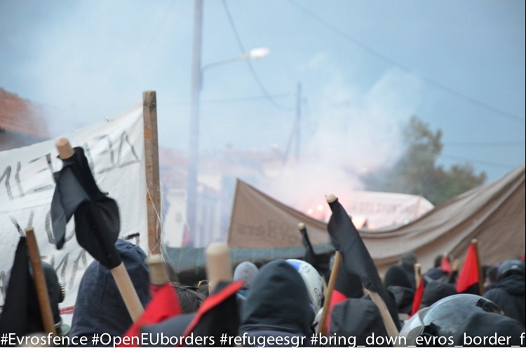 Σε αυτό το κλίμα πραγματοποιήθηκε και η προχθεσινή πορεία στις Καστανιές του Έβρου που διοργάνωσε το συντονιστικό Θεσσαλονίκης ενάντια στο Φράχτη. Η Αστυνομία προσπάθησε να διαλύσει τη συγκέντρωση ρίχνοντας δακρυγόνα, ενω αμέτρητες είναι οι φωτογραφίες αυτόπτων μάρτυρων και συμμετεχόντων (Δείτε παρακάτω) που κατέκλησαν το twitter με τα hashtags #Evrosfence #OpenEUborders #refugeesgr #bring_down_evros_border_fence.