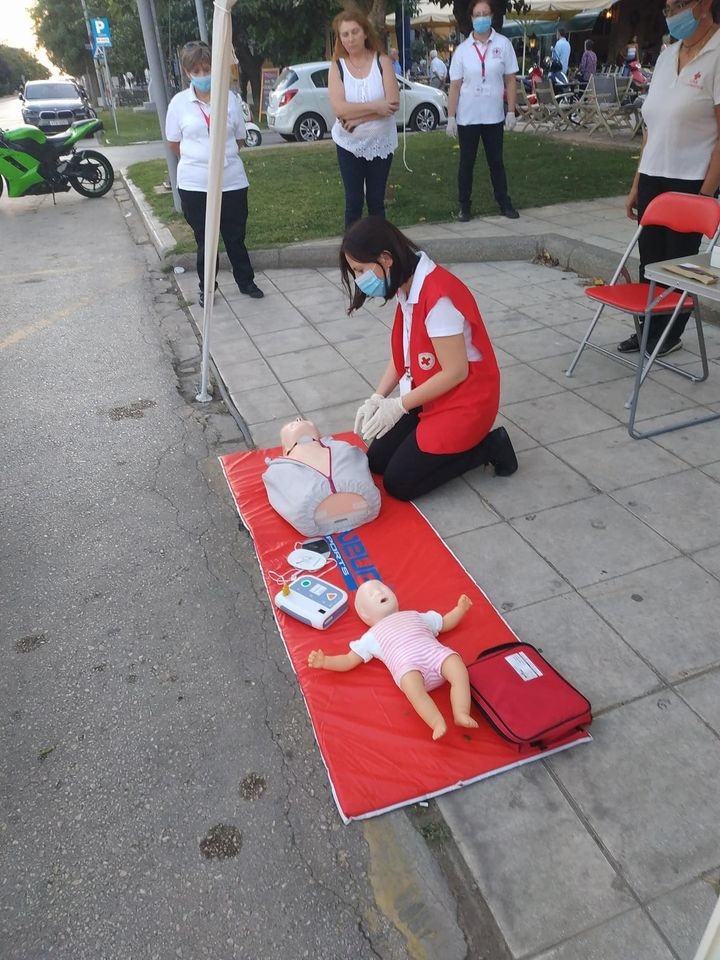Επιπρόσθετα, στο χώρο της σκηνής οι επισκέπτες είχαν τη δυνατότητα να μάθουν για τα προγράμματα Εκπαίδευσης των Πρώτων Βοηθειών που διεξάγονται στα γραφεία του Ερυθρού Σταυρού της πόλης με τη χορήγηση του Ευρωπαϊκού Διπλώματος, να δουν από κοντά τα εκπαιδευτικά προπλάσματα ενηλίκου και βρέφους και τον εκπαιδευτικό απινιδιστή.