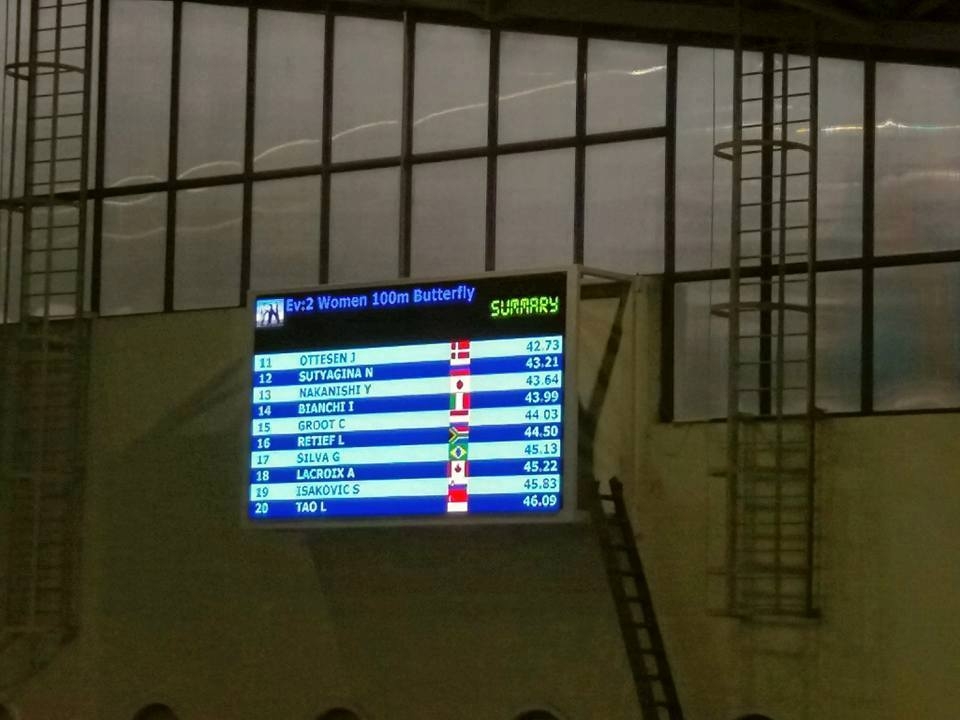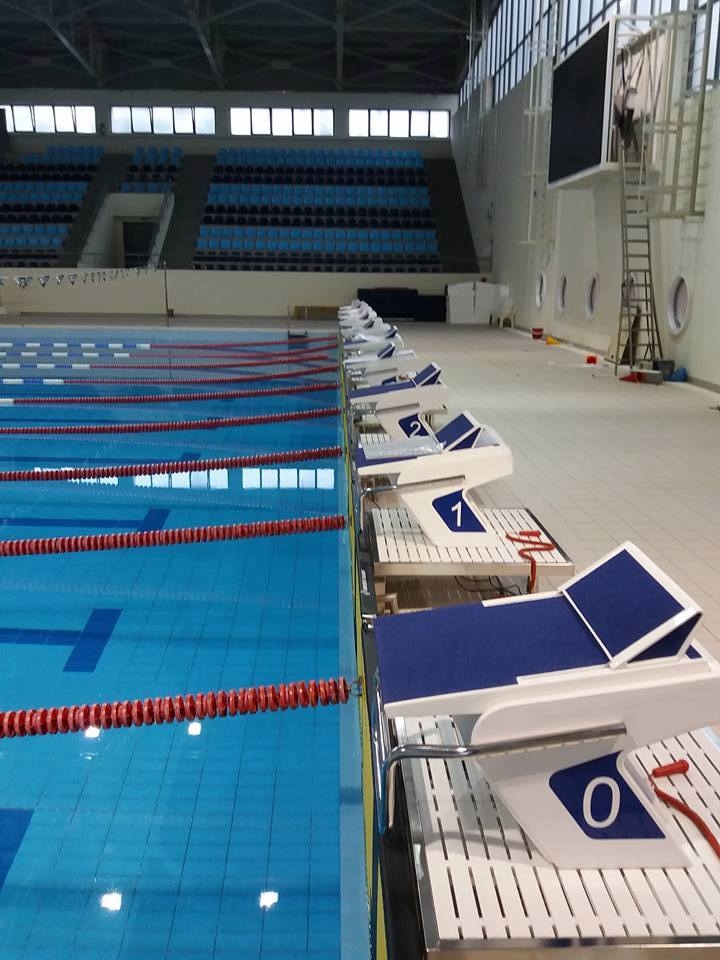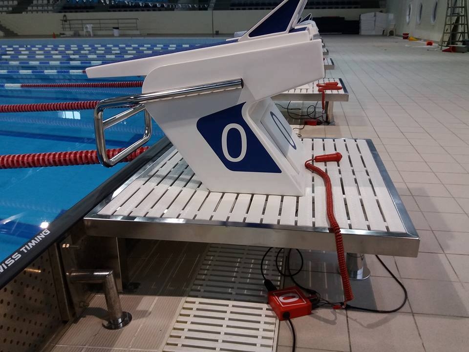 • νέους ηλεκτρονικούς βατήρες εκκίνησης και στα δύο σημεία τερματισμού της κολυμβητικής δεξαμενής που διαθέτουν ειδικό ηλεκτρονικό σύστημα ελέγχου εσφαλμένης εκκίνησης. Σε αυτό έχει προσαρμοστεί το ειδικό σύστημα εκκίνησης υπτίου