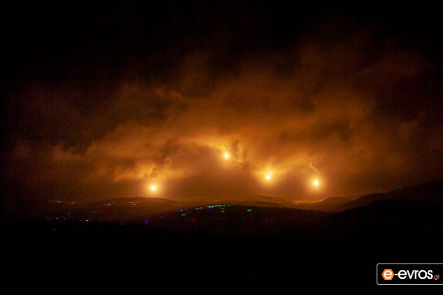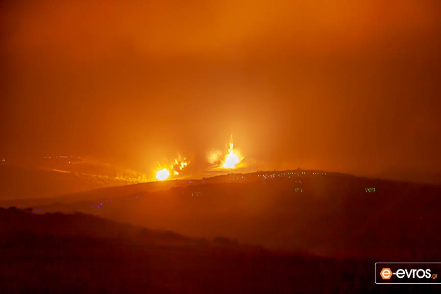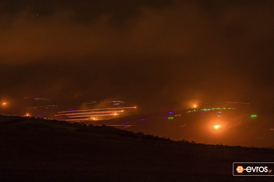 Η νύχτα έγινε μέρα στον Έβρο! Πυκνοί καπνοί και εκκωφαντικοί ήχοι από τις βολές των αρμάτων συνθέτουν το σκηνικό της νυχτερινής άσκησης «Βελισσάριος» που πραγματοποιήθηκε στο πεδίο βολής του Αετού.