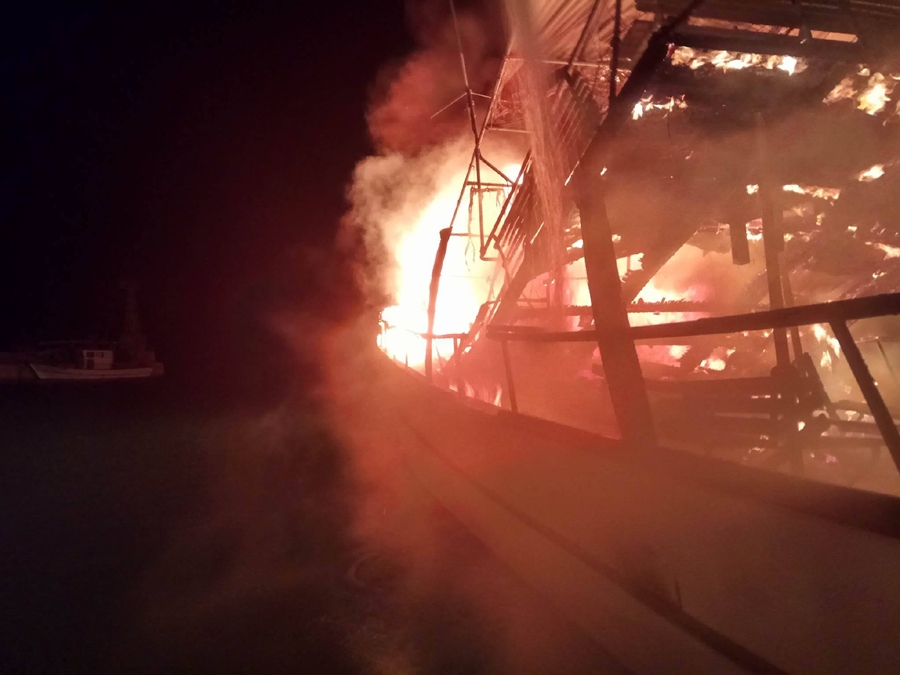 Σαμοθράκη: Ολοσχερώς κάηκε το περιηγητικό σκάφος "Θεοδώρα" (φωτο)