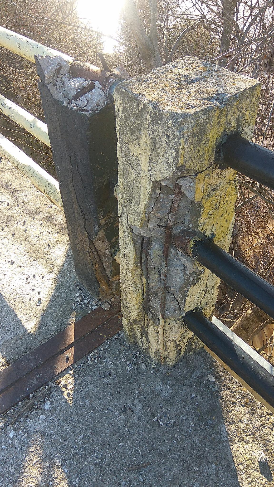Αναλυτικότερα, η γέφυρα στην είσοδο της πόλης έχει αρχίζει να... "γκρεμίζεται" όπως μπορείτε να διακρίνετε και στις φωτογραφίες.