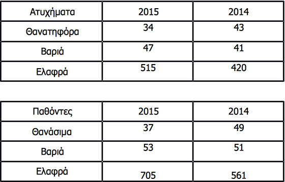 Ειδικότερα τα τροχαία ατυχήματα και οι παθόντες είναι οι ακόλουθοι :