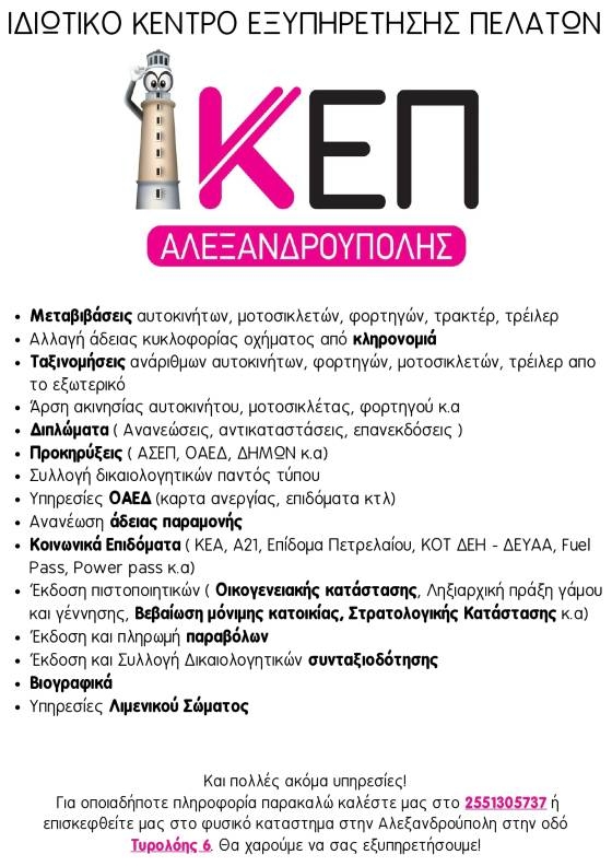 Το ΙΚΕΠ Αλεξανδρούπολης αναλαμβάνει να διεκπεραιώσει κάθε περίπλοκο θέμα σας με δημόσια υπηρεσία