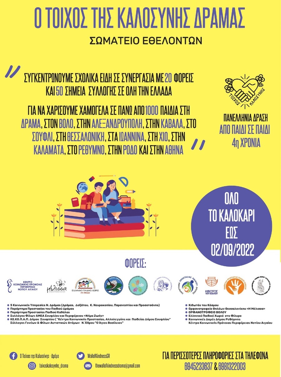 Το Σωματείο «Ο Τοίχος της Καλοσύνης» Δράμας διοργανώνει για 4η συνεχόμενη φορά την πρωτότυπη δράση «Από παιδί σε παιδί» στην οποία συμμετέχει και ο δήμος Σουφλίου.