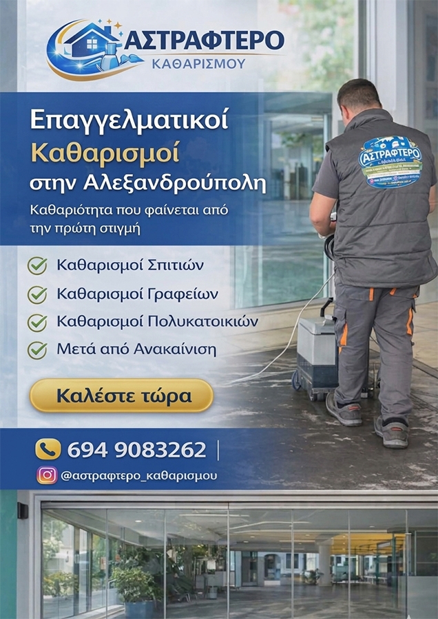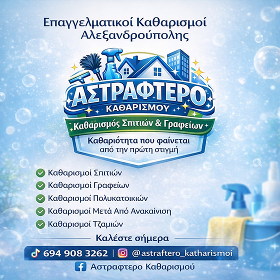 Αν ο χώρος σου χρειάζεται πραγματική φροντίδα και όχι έναν απλό καθαρισμό, το «Αστραφτερό» είναι η επιλογή που ξεχωρίζει στην Αλεξανδρούπολη.