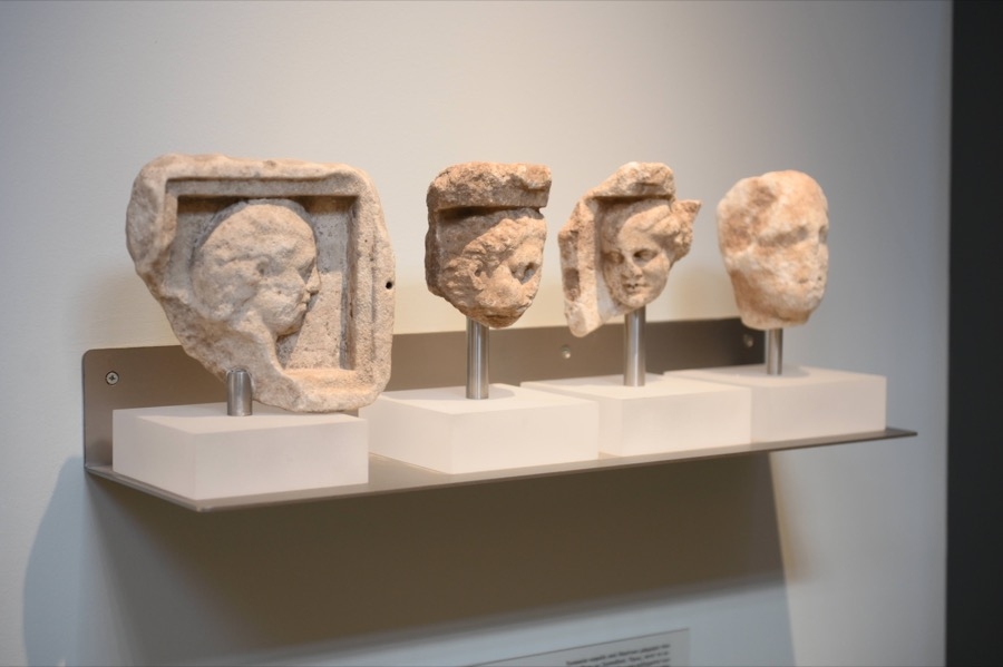 • Τμήματα μαρμάρινης ζωφόρου με χορεύτριες από το πρώην Τέμενος (340 π.Χ.).