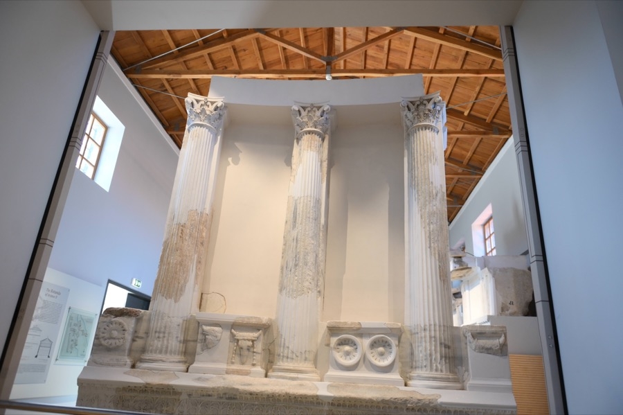 • Τμήμα αποκατεστημένης διακοσμητικής στοάς από τη Θόλο της Αρσινόης (288 - 281 π.Χ.).