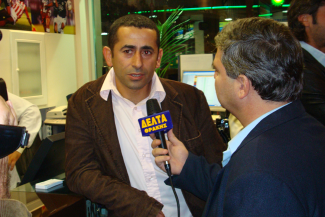 Εγκαίνια για το πρακτορείο του ΟΠΑΠ υπό τον Ν. Ουσταμπασίδη και τον Γ. Γεωργιάδη.