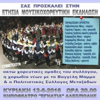 Το ΑΡΧΕΙΟ ΜΟΥΣΙΚΟΛΑΟΓΡΑΦΙΚΗΣ ΠΑΡΑΔΟΣΗΣ «ΧΡΟΝΗΣ ΑΗΔΟΝΙΔΗΣ» σας προσκαλεί σε ένα όμορφο μουσικοχορευτικό ταξίδι, με παραδοσιακά τραγούδια και χορούς από την Ελλάδα και τις Αλησμόνητες Πατρίδες, την Κυριακή 12 Ιουνίου 2016 ώρα 20.00 στο κηποθέατρο ΕΓΝΑΤΙΑ Αλεξανδρούπολης, όπου θα παρουσιαστούν...