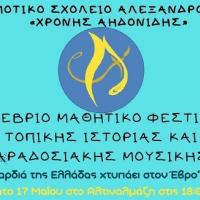 Το 4ο Δημοτικό Σχολείο Αλεξανδρούπολης «Χρόνης Αηδονίδης» και το Αρχείο Μουσικολαογραφικής Παράδοσης «Χρόνης Αηδονίδης», σε συνεργασία με την Περιφέρεια Ανατολικής Μακεδονίας και Θράκης και τον Δήμο Αλεξανδρούπολης, διοργανώνουν το 3ο Πανέβριο Φεστιβάλ Τοπικής Ιστορίας και Παραδοσιακής Μουσικής με τίτλο: «Η...