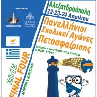 Η Οργανωτική Επιτροπή Σχολικών Αγώνων Έβρου της Δευτεροβάθμιας Εκπαίδευσης Έβρου σε συνεργασία με τον Δήμο Αλεξανδρούπολης και την Περιφέρεια ΑΜΘ διοργανώνει το Final Four του Πανελλήνιου Σχολικού Πρωταθλήματος Πετοσφαίρισης Λυκείων Ελλάδας – Κύπρου σχολικού έτους 2014-15 αγοριών και κοριτσιών. ...