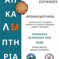 Ο Δήμος Σουφλίου σε συνεργασία με τον Σύλλογο Φίλων της Μετάξης «Η Χρυσαλλίδα» διοργανώνει αποκαλυπτήρια εκδήλωση του γλυπτού που εμπνεύστηκαν και δημιούργησαν φοιτητές και φοιτήτριες της Ανώτατης Σχολής Καλών Τεχνών Αθηνών, την Παρασκευή 26 Απριλίου 2024, ώρα 19:00 στο Πάρκο...