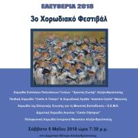 Το Ιστορικό Μουσείο Αλεξανδρούπολης και η πολυφωνική του χορωδία διοργανώνουν το 3ο Χορωδιακό Φεστιβάλ στα πλαίσια του εορτασμού των «Ελευθερίων» της πόλης μας. Στη συναυλία που θα πραγματοποιηθεί το Σάββατο 5 Μαΐου 2018 και ώρα 19:30 στο Δημοτικό Θέατρο Αλεξανδρούπολης...