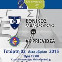 Πρόκειται για το 2ο εμπόδιο στην πορεία του για διάκριση στο Challenge Cup, όπου μετά την Σλοβένικη Panvita Pomgrad, καλείται να περάσει την VK Prievidza από την Σλοβακία. Το πρώτο ραντεβού δίνεται στην πρωτεύουσα του Έβρου, στο κλειστό γυμναστήριο "Μιχάλης...