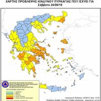 Σύμφωνα με το Χάρτη Πρόβλεψης Κινδύνου Πυρκαγιάς, που εκδίδει η Γενική Γραμματεία Πολιτικής Προστασίας του Υπουργείου Εσωτερικών (www.civilprotection.gr), για σήμερα Σάββατο προβλέπεται πολύ υψηλός κίνδυνος πυρκαγιάς (κατηγορία κινδύνου 4) για τις εξής περιοχές: · Περιφέρεια Αττικής (συμπεριλαμβανομένης και...