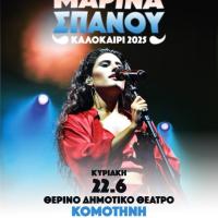 Η αγαπημένη τραγουδοποιός και ερμηνεύτρια Μαρίνα Σπανού έρχεται στην Κομοτηνή αυτό το καλοκαίρι για μια μοναδική συναυλία που υπόσχεται να μας ταξιδέψει με τις μελωδίες της κάτω από τον έναστρο ουρανό. Την Κυριακή 22 Ιουνίου, το Θερινό Δημοτικό Θέατρο Κομοτηνής θα γεμίσει...