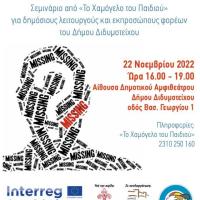 Σεμινάριο από «Το Χαμόγελο του Παιδιού» για δημόσιους λειτουργούς και εκπροσώπους φορέων του Δήμου Διδυμοτείχου, με θέμα «Καλές Πρακτικές Διαχείρισης Περιστατικών Εξαφάνισης Ανηλίκων και Ενηλίκων». «Το Χαμόγελο του Παιδιού», στο πλαίσιο υλοποίησης του έργου «Ολοκληρωμένες Χωρικές Συνέργειες για την Υγεία...