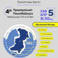 Το παράρτημα Έβρου της Ελληνικής Μαθηματικής Εταιρείας διοργανώνει και φέτος το Σάββατο 5 Απριλίου 2025 και ώρα 08:30 την 4η προσομοίωση μαθηματικών Γ' ΓΕΛ & Γ' ΕΠΑΛ σε έξι εξεταστικά κέντρα. Αυτό θα γίνει σε συνεργασία με τις διευθύνσεις των...