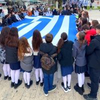 Μια τεράστια γαλανόλευκη ξεδιπλώθηκε από τους μαθητές την πλατεία του Φάρου! (video)