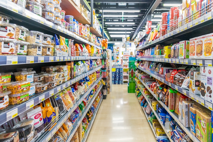 - En taze ürünlerle bakkal malzemeleri, özellikle taze meyve ve sebzeler