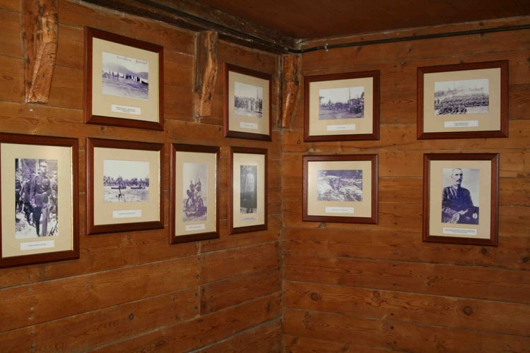 Onun hemen yanında çeşitli savaşlarda hayatını kaybetmiş askerlerin fotoğrafları sergileniyor.