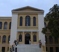 Zarifios Eğitim Akademisi, neoklasik binasıyla Milli İstiklal parkın batı tarafını kaplıyor.